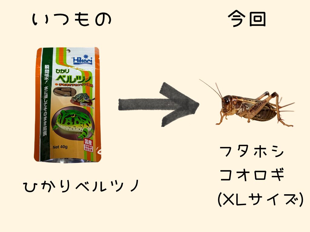 2025年10月29日餌を食べなくなったベルツノガエルがコオロギを食べました