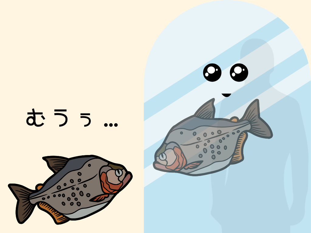 室内の照明が強いと、水槽の内側からは「外が見えず鏡面に映る」ことがあり、自分や相方を別の個体と勘違いしてストレスを感じることも。 - 観察しにくくなる