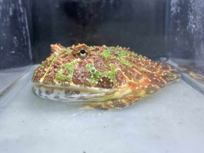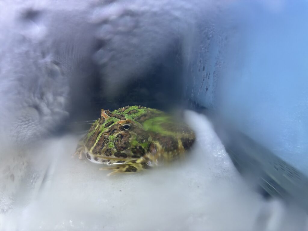 寒い冬は熱帯地域原産のベルツノガエルにとっては試練の期間なので