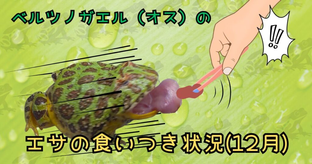 ベルツノガエル(オス)のエサの食いつき状況(12月) 2026.01.01 カエル satosigege ひろしげブログ 水槽に使うおすすめの電源タップ(基本編) 2025.12.19 水槽用品 satosigege ひろしげブログ 2025年12月5日ビーシュリンプの現在の様子 2025.12.05 ビーシュリンプ satosigege ひろしげブログ ベルツノガエル飼育に使う水道水はカルキ抜きをしたらいいのか 2025.11.28 水槽メンテ(水質関係) satosigege ひろしげブログ 飼育環境を見直したらベルツノガエルが餌を多く食べました 2025.11.20 ベルツノガエルのえさ satosigege ひろしげブログ ベルツノガエルの冬の飼育方法 2025.11.12 カエル satosigege ひろしげブログ 2025年10月29日餌を食べなくなったベルツノガエルがコオロギを食べました 2025.11.05 ベルツノガエルのえさ satosigege ひろしげブログ 2025年10月22日ベルツノガエルが餌を食べなくなってしまいました 2025.10.29 カエル事故 satosigege ひろしげブログ 2025年9月29日水換えポンプを買い換えました 2025.10.15 水槽用品 satosigege ひろしげブログ 2025年10月5日ベルツノガエルに冷凍マウスを食べさせてみました 2025.10.07 ベルツノガエルのえさ satosigege ひろしげブログ もっと見る